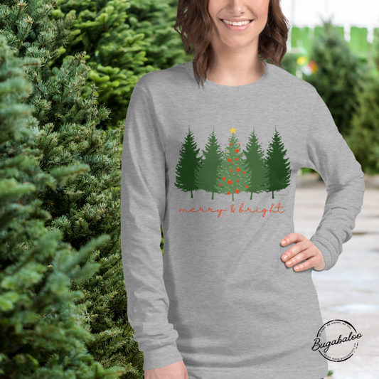 Merry and Bright Christmas Tree Unisex Long Sleeve Tee